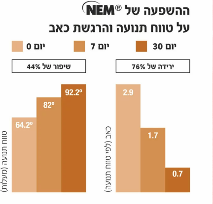 התוסף המתקדם ביותר שלנו עבור מפרקים ושרירים, עם הרכיב ®NEM שעוזר תוך 7-10 ימים לדלקות מפרקים. הרכיבים המדהימים ®NEM ו-®BioCurc שנבדקו קלינית, יסייעו בהגברת הגמישות ויזרזו את התאוששות הגוף לאחר פעילות גופנית. ®NEM מגביר את טווח התנועה, מכיל חלבונים וחומצה היאלורונית, נמצא יעיל פי 5! מגלוקוזאמין ומכונדרואיטין, בעוד ש-®BioCurc, רכיב שפותח בפטנט מוגן, מספק כורכומין עם זמינות גבוהה ב-200% ומאפשר לגוף ספיגה מקסימלית